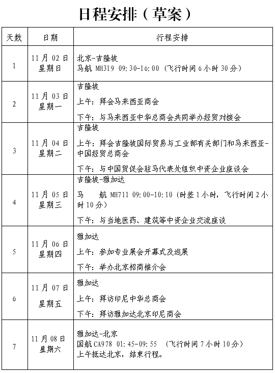 为不断深化北京与东盟国家经贸交流合作,进一步加强北京与马来西亚、印度尼西亚两国工商界交往,切实推动中马、中印企业务实合作,持续推进北京与东盟国家的经贸合作高质量发展。北京市贸促会拟于11月上旬组织智能制造、医药健康、绿色能源、金融科技、现代农业等领域的企业出访马来西亚和印度尼西亚。代表团将深入考察当地营商环境,参观调研行业展会,拜会当地经贸部门和知名企业,与马来西亚、印度尼西亚商协会等机构共同组织经贸洽谈活动。