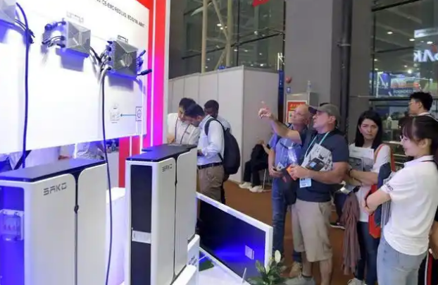 2024年4月16日,采购商在第135届广交会上了解太阳能发电设备。(新华社记者 卢汉欣 摄)