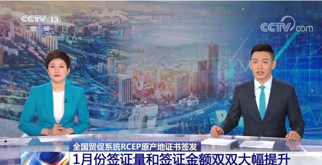 原产地证书签发情况是对外贸易的晴雨表。记者从今天(2月22日)举行的贸促会例行发布会上了解到,1月份,全国贸促系统RCEP原产地证书签证量和签证金额双双大幅提升。