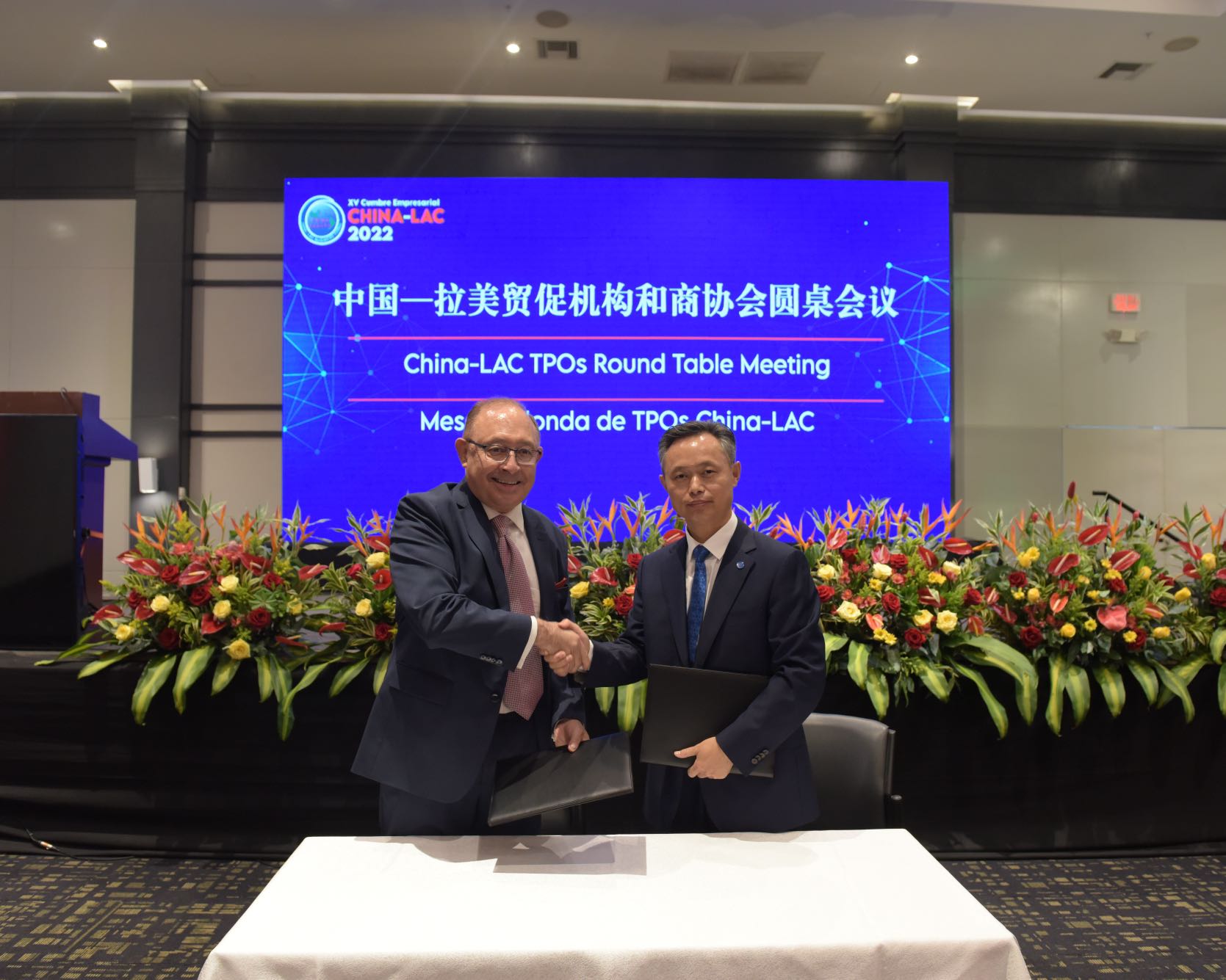 第十五届中拉企业家高峰会主题会期为12月14-15日,主题为“抓住疫情复苏机遇,构建互联互通世界”,由中国贸促会与厄瓜多尔生产、外贸、投资和渔业部共同主办,会议共举办开幕式、全体会议、3场平行会议等主体活动,以及中拉贸促机构和商协会圆桌会议、中拉企业家对接洽谈会、4场论坛、中拉产业合作展等一系列配套活动。北京市贸促会主任郭怀刚率北京团参加上述活动,与拉美政商各界开展广泛接触和深入交流,积极宣传推介北京国际贸易投资环境,并与厄瓜多尔、墨西哥、多米尼加、萨尔瓦多等国贸易投资促进机构和商协会签署多项合作协议,致力于进一步深化与拉美各国在数字贸易、科技、文化、旅游等重点产业领域的务实高效合作。