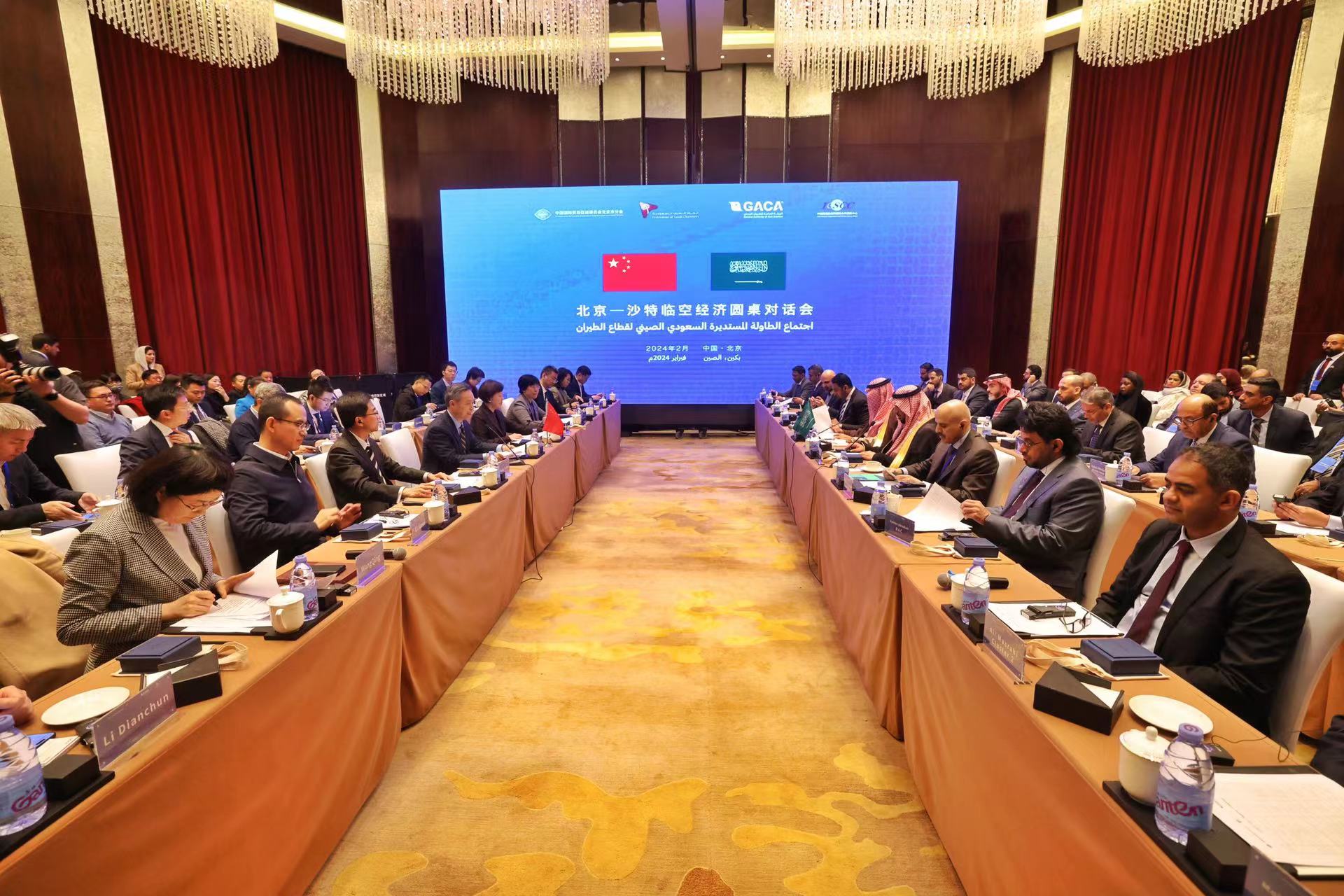 21日下午,北京市贸促会与沙特民航总局、沙特-中国商务理事会共同主办的“北京—沙特临空经济圆桌对话会”在泛太平洋酒店召开。来自沙特阿拉伯航空、利雅得航空、沙特机场控股公司等企业的60多位沙特企业家与北京市70余家临空经济企业负责人,围绕低空经济、通用航空、航空物流、飞机维修、自动驾驶等多个领域深入洽谈。