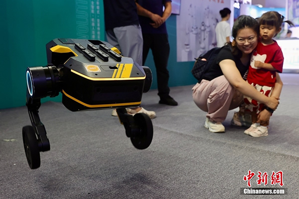 7月13日,第二十六届北京科博会在北京国家会议中心开幕。本届科博会以“实施创新驱动发展战略 增强高质量发展动能”为主题,主要分为展览会、贸易投资促进活动和线上展示对接三大部分。其中,展览会展区总面积约2.2万平方米,共设置信息科技、智能制造、医药健康、绿色双碳、数字经济和区域创新发展等6个专题展区。图为垂直起降无人机吸引参观者。