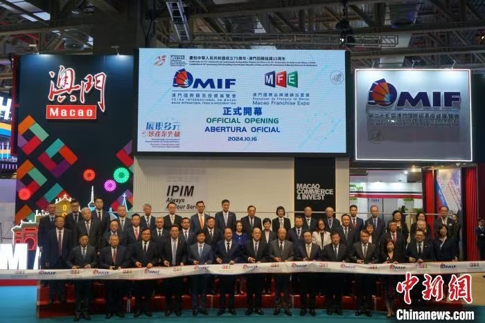 10月16日,第二十九届澳门国际贸易投资展览会(MIF)与澳门国际品牌连锁加盟展2024(MFE)在澳门金光会展中心正式开幕。中新社记者 郑嘉伟 摄