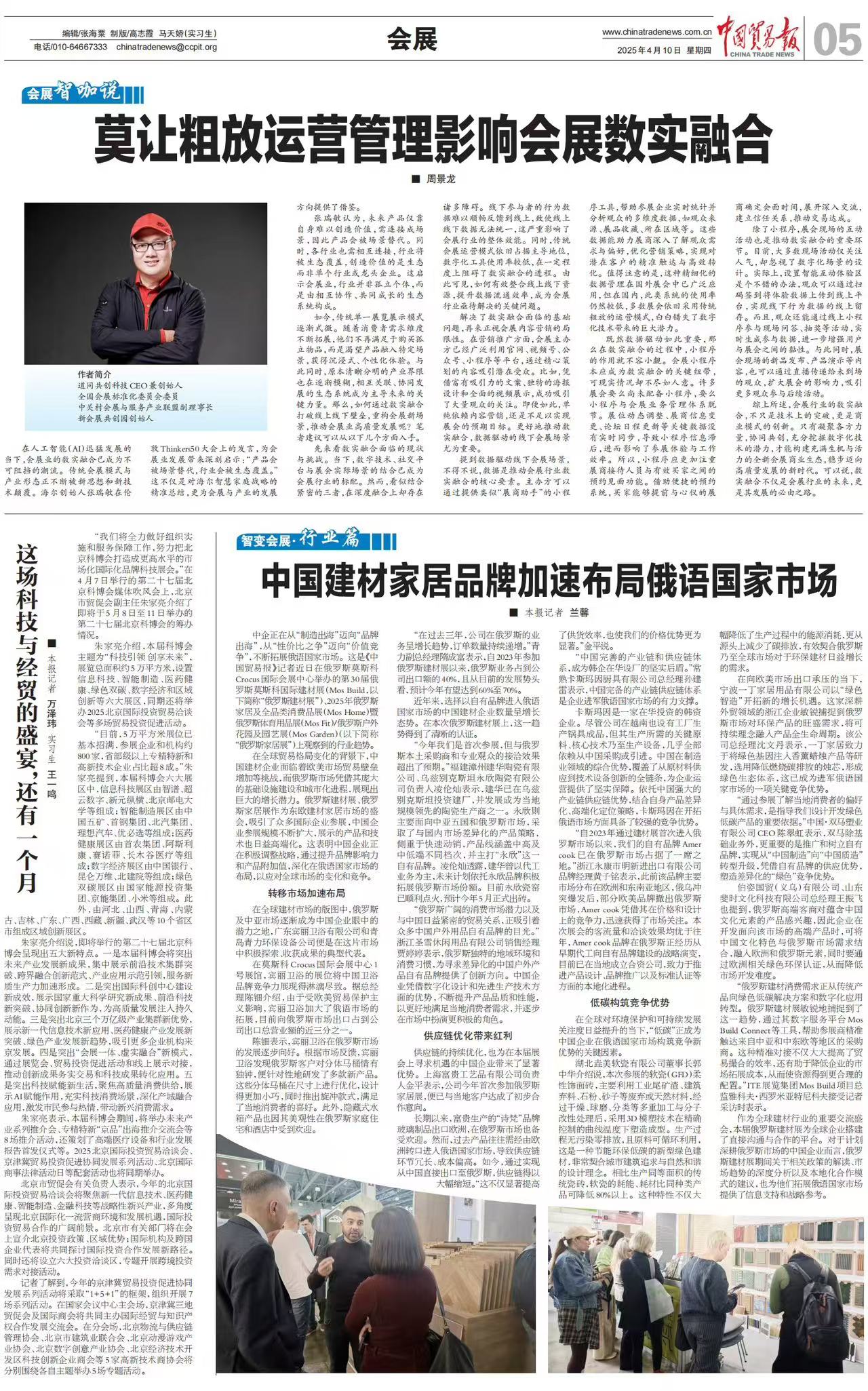 朱家亮介绍,本届科博会主题为“科技引领 创享未来”,展览总面积约5万平方米,设置信息科技、智能制造、医药健康、绿色双碳、数字经济和区域创新等六大展区,同期还将举办2025北京国际投资贸易洽谈会等多场贸易投资促进活动。
