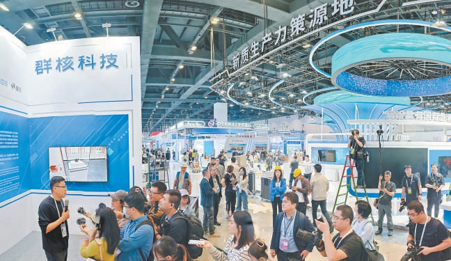 现场,前沿科技、新兴产业和未来产业的新成果处处可见。波色量子公司展台里,一圈圈酷炫的光纤环,将量子计算的核心技术原理具象化呈现。此次科博会上,企业首次展出的1000量子比特相干光量子计算机,是国内首个突破千比特规模的光量子计算机。
