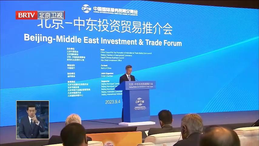 9月4日,北京-中东投资贸易推介会在国家会议中心举行,这是服贸会首次举办中东主题推介活动。作为2023年服贸会重点推介洽谈活动之一,推介会以“合作·发展·共赢”为主题,重点围绕国别营商环境、国际金融投资与服务、国际商事法律服务与保障等议题进行交流研讨。