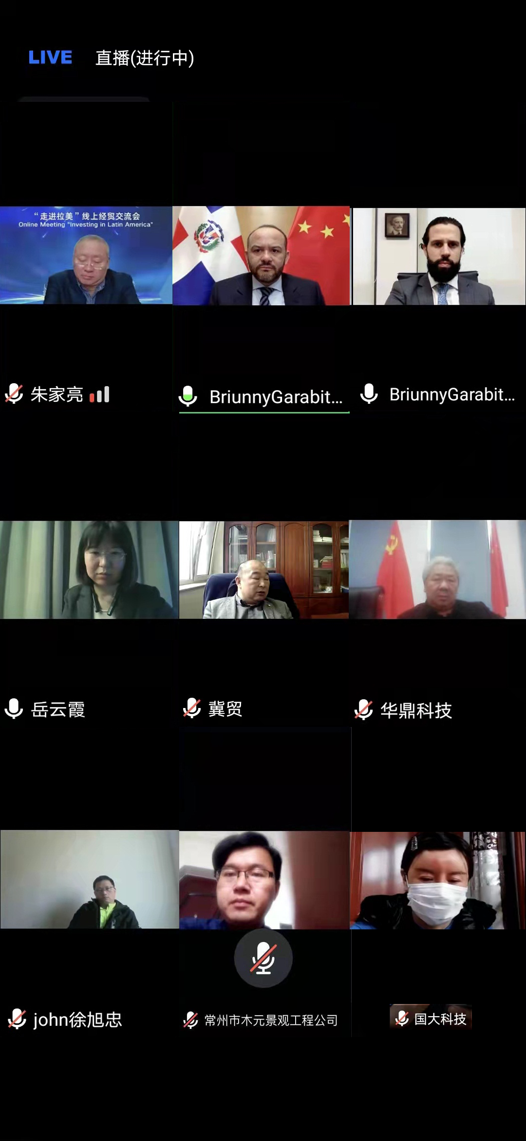 3月24日下午,我会与天津市、河北省、沈阳市、青岛市五地贸促会、国际商会联合北京国际经济技术合作协会、北京市进出口企业协会共同主办了“走进拉美”线上经贸交流会。交流会由北京市贸促会副主任朱家亮主持,多米尼加共和国驻华大使布里乌尼·加拉维托·塞古拉发表致辞,参赞卡里诺·冈萨雷斯、中国社会科学院拉丁美洲研究所经济研究室主任岳云霞分别做“多米尼加经贸环境”、“中拉经贸合作机遇与挑战”专题报告。主协办单位、相关商协会及京内外企业代表约240人参加本次交流会。