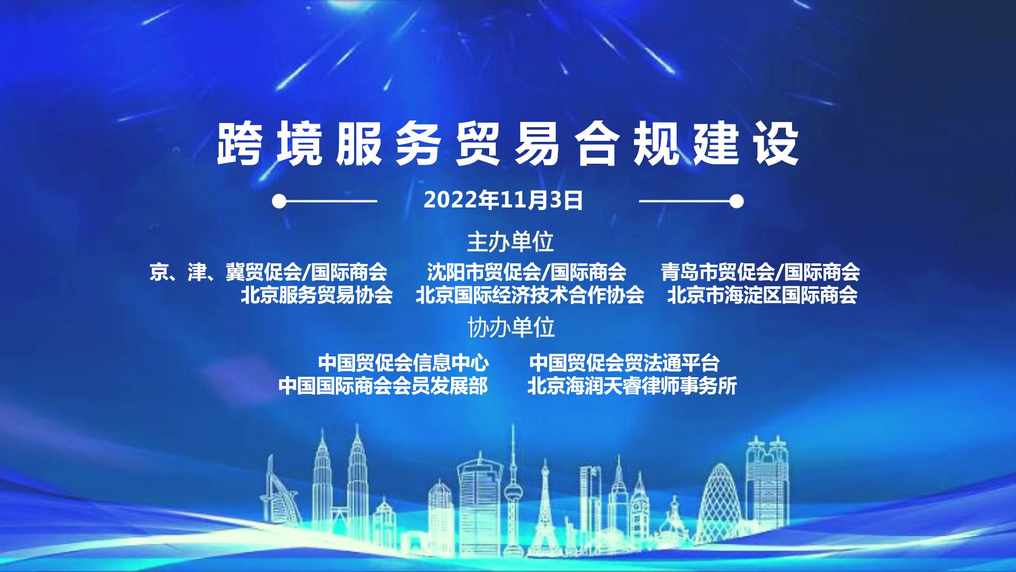 11月3日下午,我会与天津市、河北省、沈阳市、青岛市贸促会、国际商会,以及北京服务贸易协会、北京国际经济技术合作协会、北京市海淀区国际商会共同主办了“跨境服务贸易合规建设”线上培训会。主协办单位、相关商协会及京内外企业代表140余人参加本次培训会。