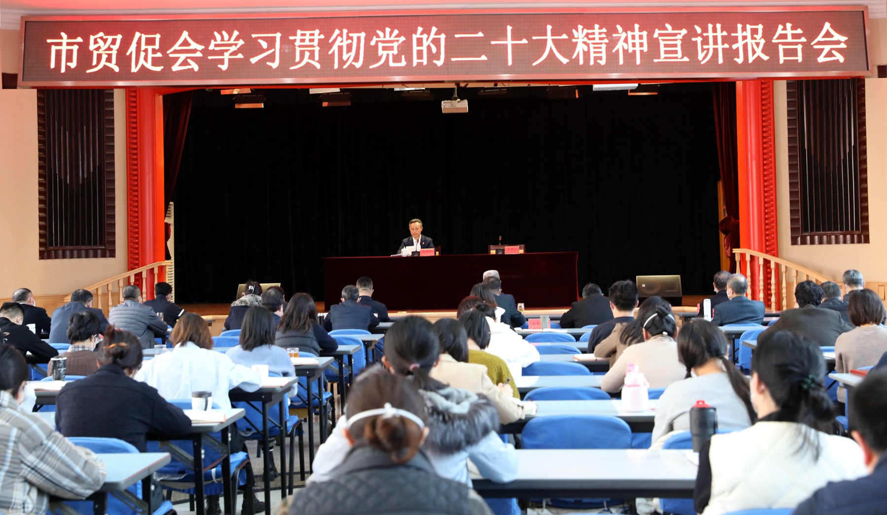 1月9日下午,市贸促会召开学习贯彻党的二十大精神宣讲报告会。党组书记、主任郭怀刚作宣讲报告。他强调,要认真学习领会党的二十大精神,紧密团结在以习近平同志为核心的党中央周围,高举中国特色社会主义伟大旗帜,全面贯彻习近平新时代中国特色社会主义思想,立足职责定位,主动对标对表,以更高站位、更大格局、更宽视野、更实举措谋划落实好各项工作,不折不扣推动党的二十大精神在贸促工作中落地生根、开花结果。