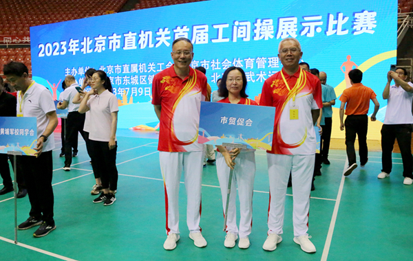 7月9日,北京市直机关首届工间操展示比赛在北京工人体育馆举办,来自市直机关系统的87家单位110支代表队近2000名干部职工参加展示。北京市贸促会经过认真准备、激烈角逐,取得三等奖好成绩。