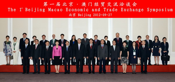 由北京市人民政府和澳门特别行政区政府共同主办,北京市政府港澳事务办公室、北京市贸促会和澳门贸易投资促进局承办的第一届北京•澳门经贸交流洽谈会(以下简称“京澳洽谈会”)五大板块各项活动已于2012年10月21日圆满闭幕。会议以“深化交流合作,促进共赢发展”为主题。中共北京市委书记郭金龙宣布第一届京澳洽谈会开幕。澳门特别行政区行政长官崔世安,中共北京市委副书记、代市长王安顺、国务院港澳办副主任周波、中央驻澳联络办副主任高燕、北京市副市长程红出席开幕式暨合作协议签约仪式。600余名澳门特别行政区政府代表、企业家、参展商,以及北京市相关委办局、区县、商协会代表分别参加了开幕式、合作签约、专题推介等活动,共同见证了京澳两地政府全面启动战略合作关系的历史篇章。