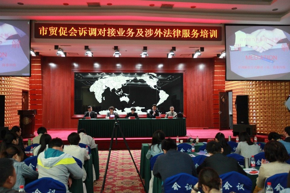 2014年4月24日至25日,北京市贸促会法律中心在京举办“北京市贸促会诉调对接业务及涉外法律服务培训会”,市商务委、市文化局、市政府外宣办等十余个市属委办局及来自我市进出口企业、北京国际会议展览业协会等单位的300多位代表参加了培训。