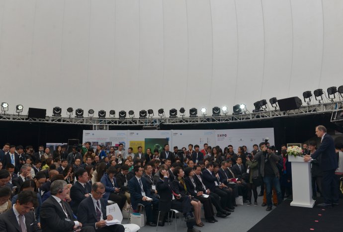 萨拉代表意大利米兰世博会组委会在致辞中感谢中方全方位参与米兰世博会,简要介绍了米兰世博会筹备进展,欢迎中国民众2015年参观米兰世博会。开幕式期间,萨拉先生宣布国际著名钢琴家郎朗将正式成为2015米兰世博会的官方形象大使。“我感到非常荣幸有机会成为米兰世博会的代表。谢谢组委会。这届世博会的主题是‘滋养地球,生命的能源’。不得不说,可持续发展、环境与粮食生活有必要成为全球关注的焦点。真诚祝愿各位能够在世博期间尽情享受米兰的美景美食。”郎朗在祝贺视频中说道。