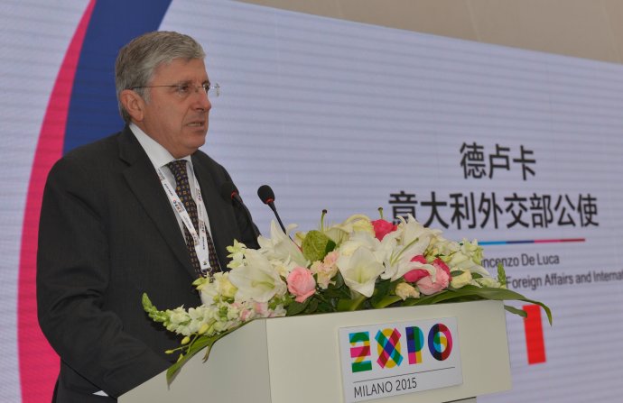 德卢卡代表意大利外交部高度评价中国高度重视参展意大利米兰世博会工作对推动中意两国关系全面协调发展的重要作用。他讲到:“这次大规模路演活动是’2015米兰世博会针对中国的特别计划’的主要力量,这项计划早在2013年就开始筹备,其目的旨在让中国人民提前预览米兰全球博览会将带来的精彩内容与巨大机遇,并助力世博门票在全球的市场营销活动。”