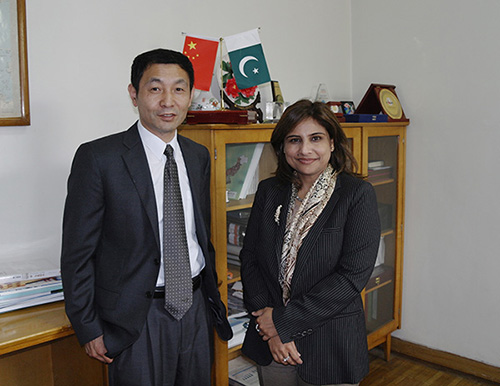 阿尔法·依克巴尔女士首先介绍了今年4月份习近平主席访问巴基斯坦时一些情况。在习近平主席提出构建中巴命运共同体倡议下,侯赛因总统、谢里夫总理一致同意将中巴关系提升为全天候战略合作伙伴关系。使馆方面也一直致力于推动中巴经济走廊建设取得实质性进展。