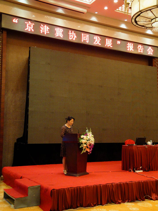 6月24日下午,北京、天津、河北三地贸促会与北京物流协会、天津交通与物流协会、河北省现代物流协会在北京共同举办“京津冀协同发展”报告会。报告会由我会副主任林彬主持。我会领导李露霞、于海波、王超英,天津市贸促会副会长宋赤军、河北省贸促会会务部负责同志出席报告会。北京市社科院副院长赵弘、天津市自贸区管委会办公室副主任房勇作专题报告。北京市商务委、北京市投促局,北京市市长国际企业家顾问会议成员单位,北京国际商会会员,三地35个经贸类商协会会员,北京部分贸促支会,相关企业代表共350余人参加。