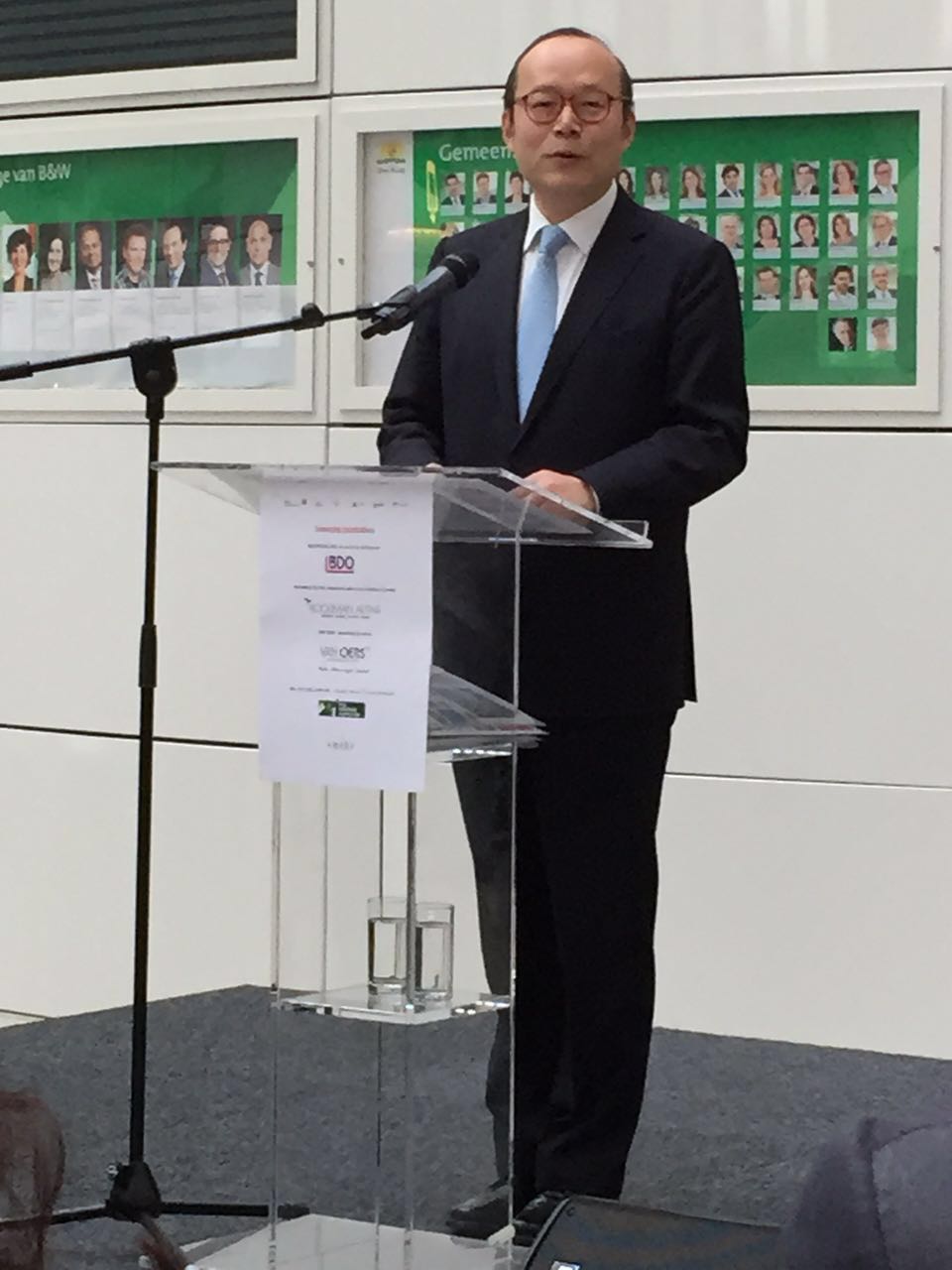 图为中国驻荷大使陈旭在展览开幕式上致辞