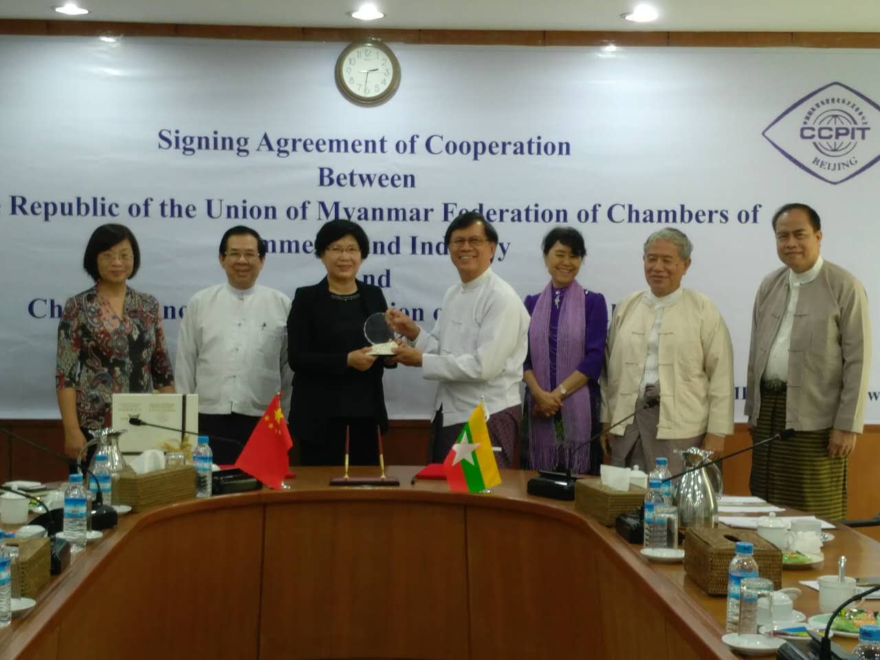 10月10日,北京市贸促会副主任李露霞在仰光与缅甸工商联合会副主席Maung Maung Lay举行会谈,就加强企业团组互访、组织经贸洽谈,互派经贸团组参加双方重大经贸活动,合作开展国际经贸法律服务等方面进行深入探讨,并签署友好合作协议。这是北京市贸促会与首家缅甸商协会建立友好合作关系,是落实北京市“一带一路”建设实施方案,推进“一带一路”城市联盟建设,促进沿线国家经贸交流合作的又一务实举措。截至目前,北京市贸促会已与72个国家和地区的178的商协会组织签订友好合作协议。