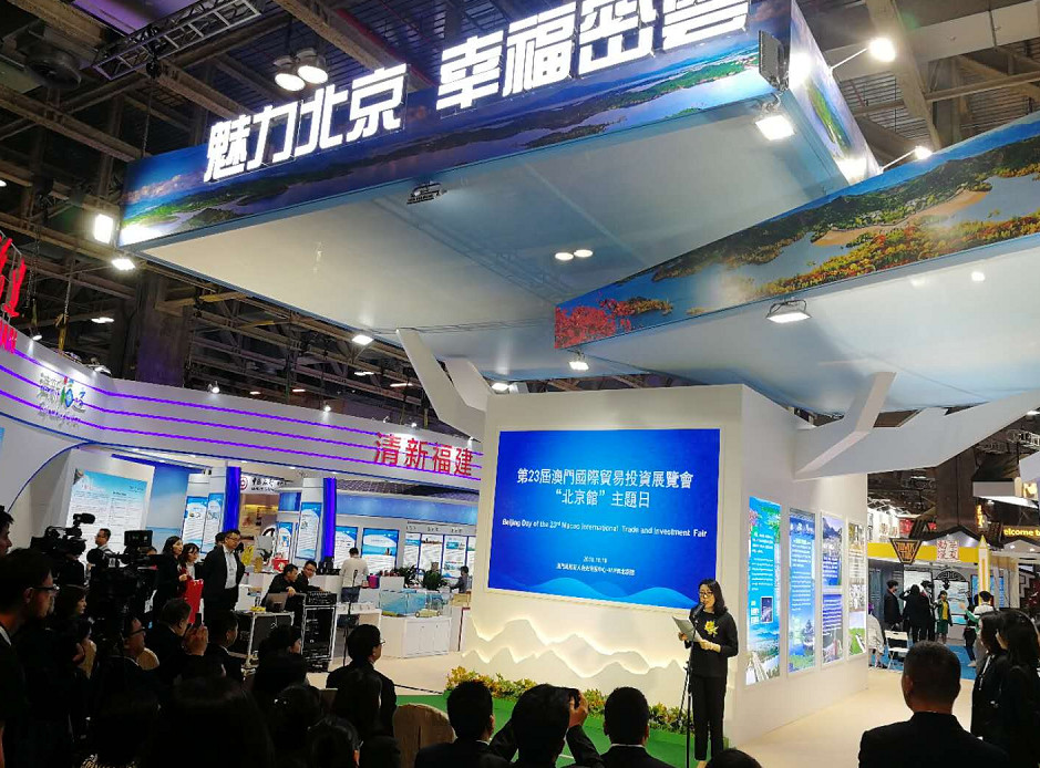 2018年10月18日至20日,在市政府港澳办的领导协调下,我会参与承办的北京市参加第23届澳门国际贸易投资展览会(以下简称MIF)和“北京馆主题日”活动取得圆满成功。北京与澳门作为合作伙伴,连续第九年派团参加MIF展会。根据市政府统一安排,今年由密云区代表北京市参展,参展主题是“魅力北京•幸福密云”。