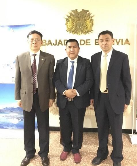 2月28日上午,马长军副主任一行前往玻利维亚驻华大使馆拜访大使Heriberto Quispe Charca先生。双方就如何加强中玻经贸合作、助力玻方企业拓展中国市场等内容进行了深入交流。