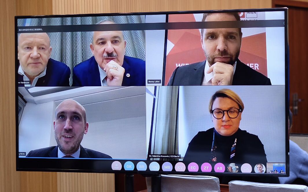北京时间11月30日下午,2020全球大都市商会会长联席会议(简称“C-7”会议)召开。会议采取线上视频方式,由奥地利维也纳工商会轮值主持,北京市贸促会、法国巴黎大区工商会、德国柏林工商会、英国伦敦工商会、俄罗斯莫斯科工商会、巴西圣保罗工业联合会等共7家商会会长及代表和专家参加会议。会议围绕“帮助企业应对新冠疫情影响”和“智慧城市战略”两个主题进行了深入讨论。我会张永明主任出席会议并发言,吴岚岚副主任出席会议。北京市大数据中心副主任、市经济和信息化局大数据应用与产业处处长唐建国应邀参加会议并介绍我市智慧城市建设情况。