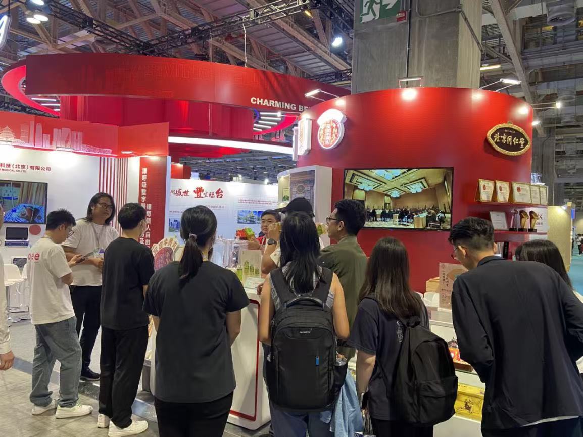 中医药展区亮点纷呈,北京同仁堂展示了非物质文化遗产“安宫牛黄丸制作技艺”,中医药专家为观众提供健康咨询,现场还邀请观众亲身体验草本香囊制作并品尝时令草本饮品,促进传统中医药文化“走出去”。