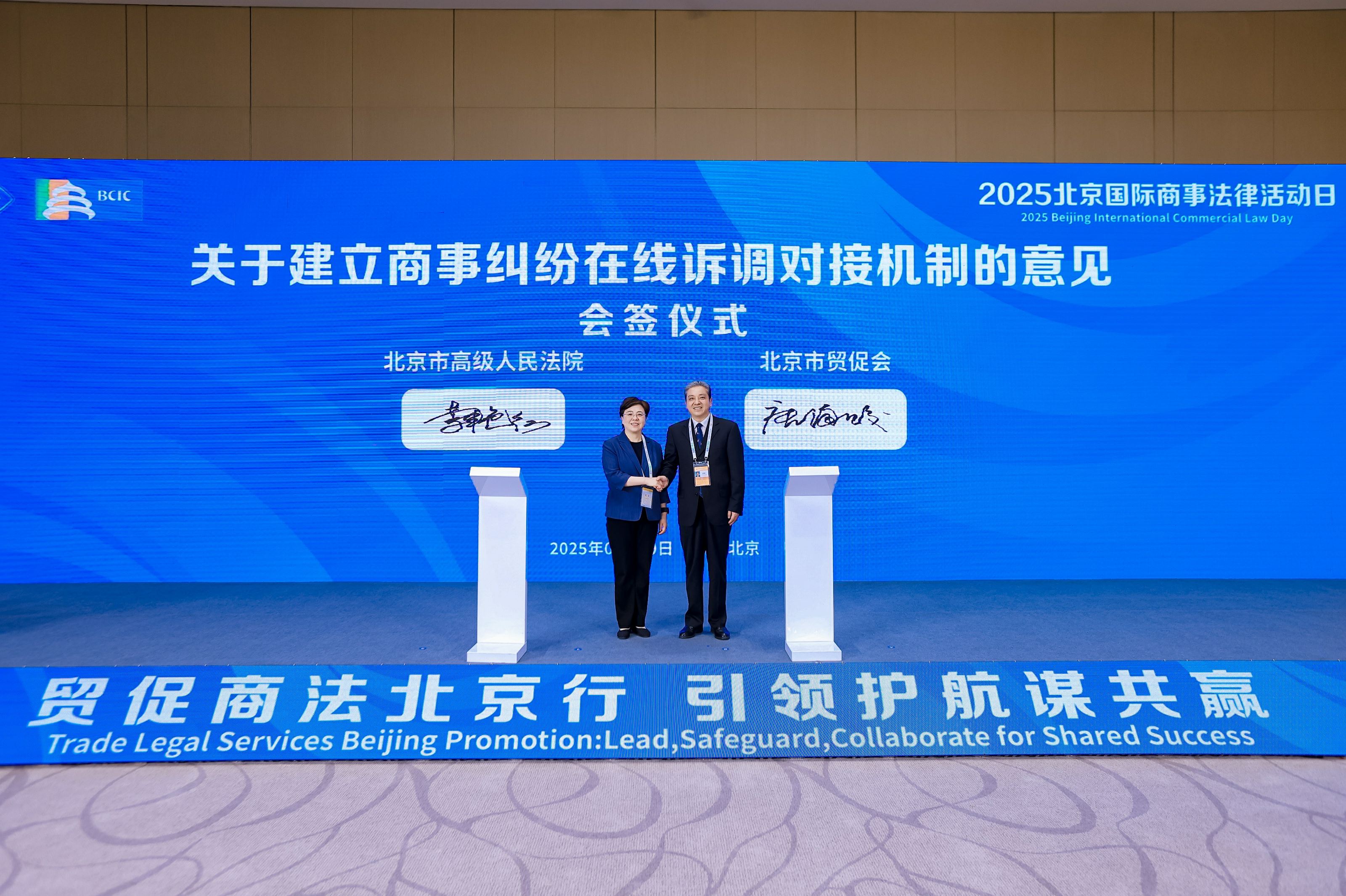 北京贸促会相关负责人表示,此次国际商法活动日有以下特点:一是为落实《中国国际贸易促进委员会 北京市人民政府深化合作备忘录》,中国贸促会全部法律服务部门集体亮相宣介贸促商法服务,以最强阵容开展“贸促商法北京行”活动;二是市高级人民法院会同市贸促会签署文件,共同推进商事法律纠纷诉调对接机制建设,助力我市打造市场化、法治化、国际化一流营商环境;三是多名重要国际组织负责人及法学专家参与交流发言,结合当前国际经贸形势及商事法律前沿动态,共商共议强化国际交流合作,助力首都高水平对外开放;四是贸促商法两项成果发布及首个企业合规师培训示范基地揭牌,体现了北京贸促机构商法服务的务实举措;五是两场专题会议围绕知识产权、出海经营等热点及企业关注法律问题,展开深入研讨交流分享,切实护航我市公司企业拓展国际市场;六是27家法律服务机构现场展示宣介,与参会企业面对面交流沟通,搭建了务实高效的合作共赢平台。