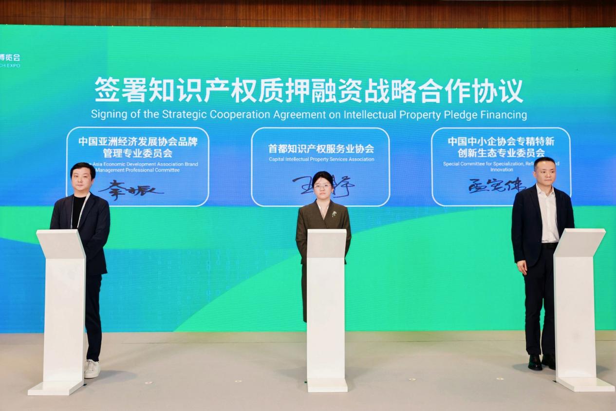 首都知识产权服务业协会还分别与中国亚洲经济发展协会品牌管理专业委员会、中国中小企业协会专精特新创新生态专业委员会签署了知识产权质押融资战略合作协议,未来将通过建立合作机制、加强人才培养、开展宣传教育、提升服务能力四方面,充分发挥各方优势,整合资源,为中小企业提供更加便捷、高效的知识产权质押融资服务,助力中小企业解决融资难题,促进企业创新发展。